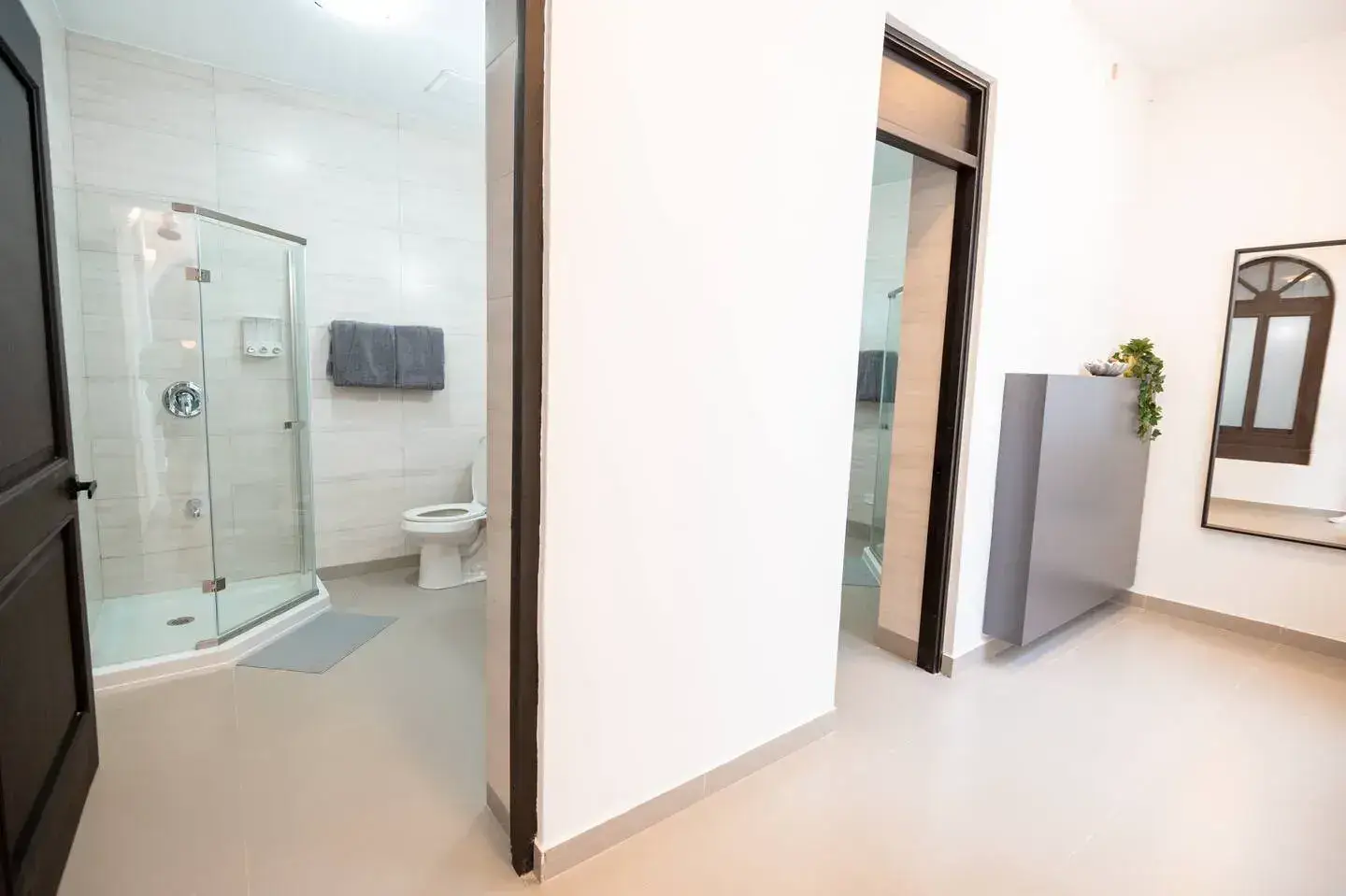 The Residence spans the entire third floor of a beautifully restored building. Guests enjoy a private entrance with a personalized entry code, spacious common areas, and a fully stocked kitchen. From morning coffee on the balcony to sunset cocktails with views of the skyline and ocean, every detail has been designed for comfort and ease.