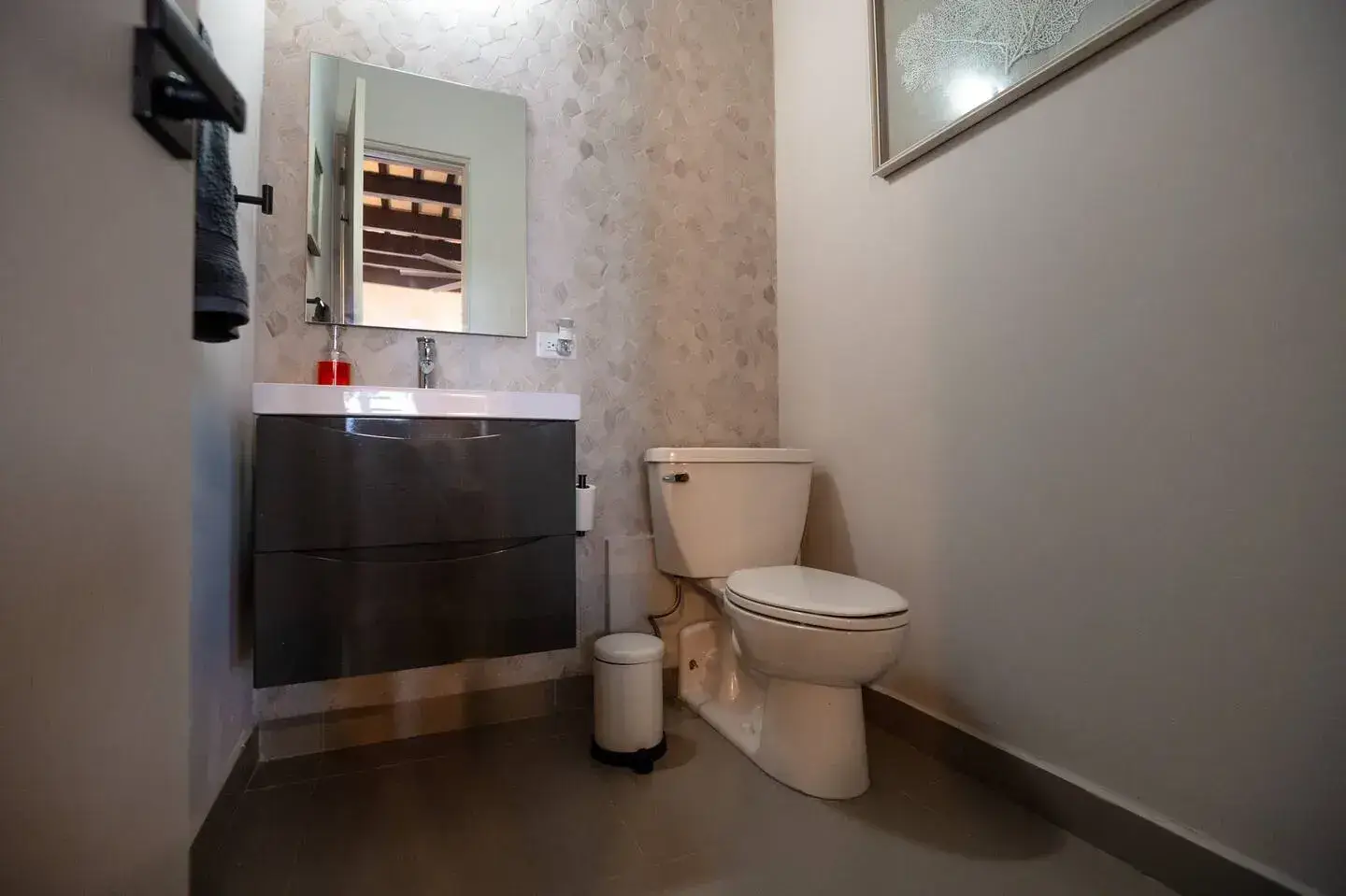 - Living Room Area: Two sleeper sofas and a half bathroom